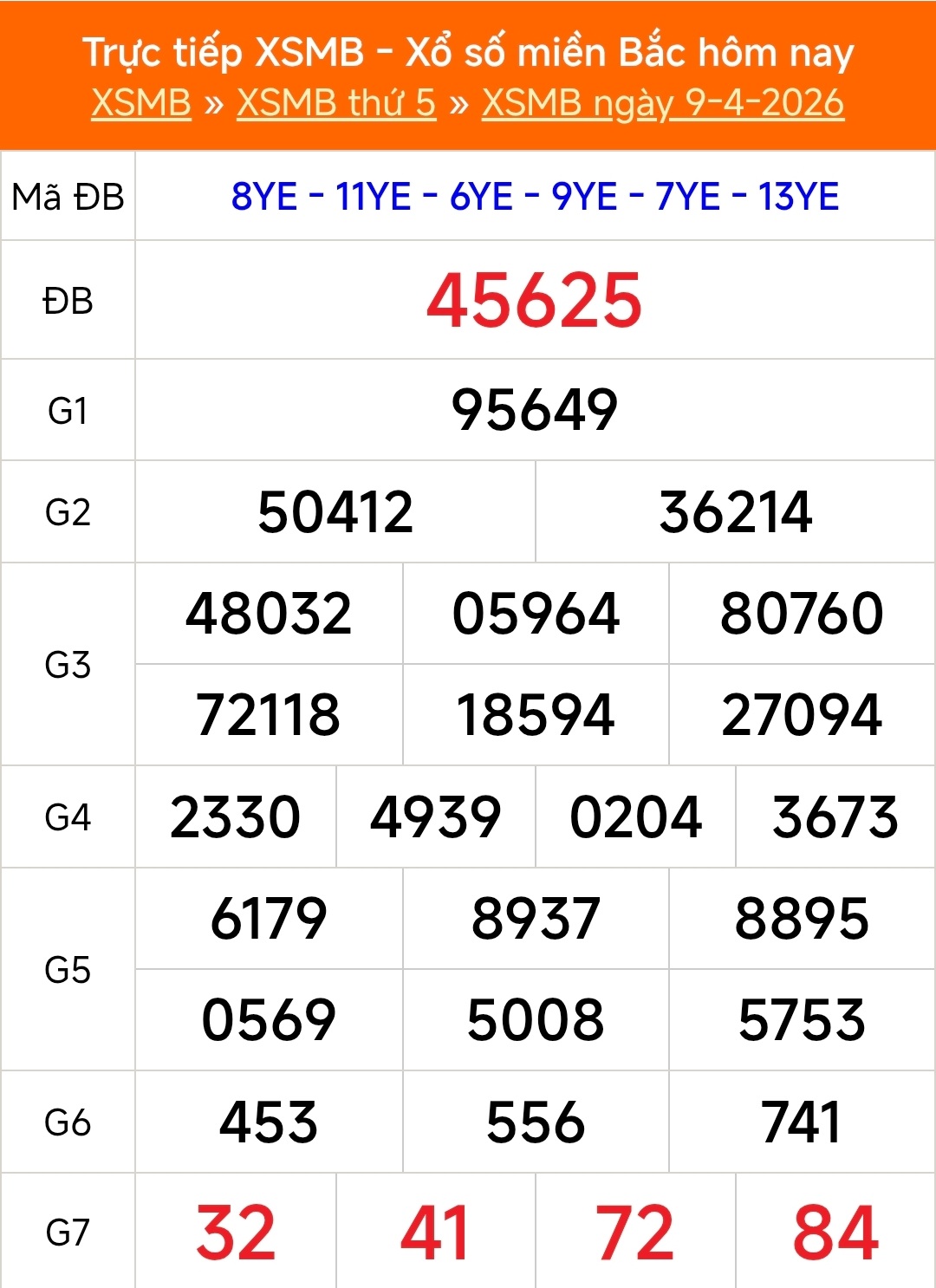 Kết quả Xổ số miền Bắc ngày 9/4/2026
