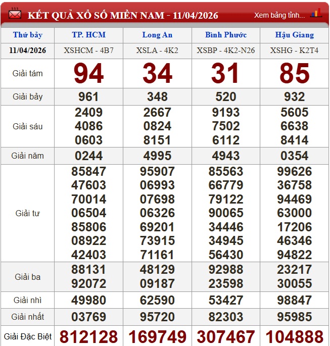 Kết quả Xổ số miền Bắc ngày 11/4/2026