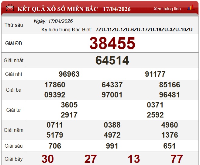 Kết quả Xổ số miền Bắc ngày 17/4/2026