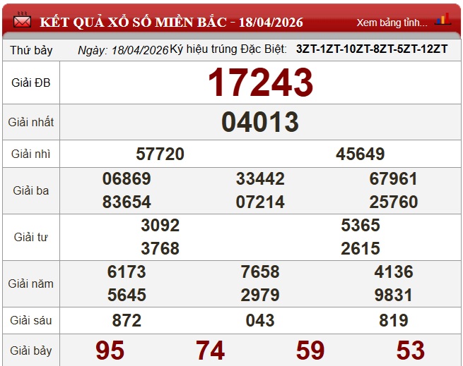 Kết quả Xổ số miền Bắc ngày 18/4/2026