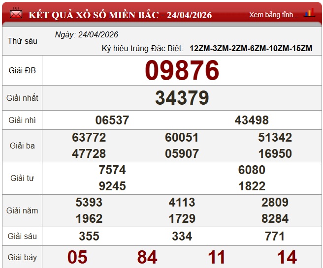 Kết quả Xổ số miền Bắc ngày 24/4/2026