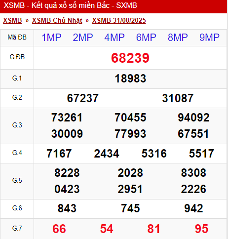 - XSMB 31/8/2025. Xem lại KQXSMB ngày 31/8/2025