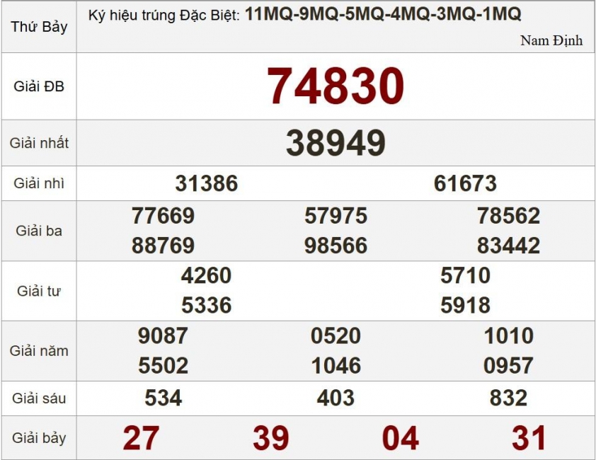 - Thứ Bảy: Xổ số miền Bắc (XSMB) quay thưởng tại đài Nam Định (XSNĐ).