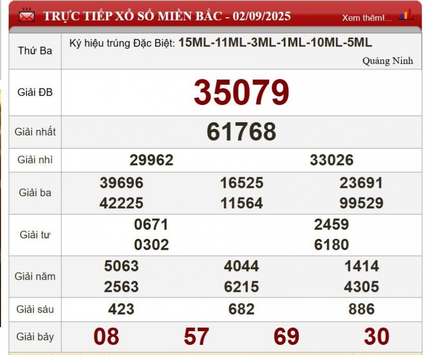 Trực Tiếp kết quả xổ số miền Bắc 3/9/2025 - XSMB 3/9