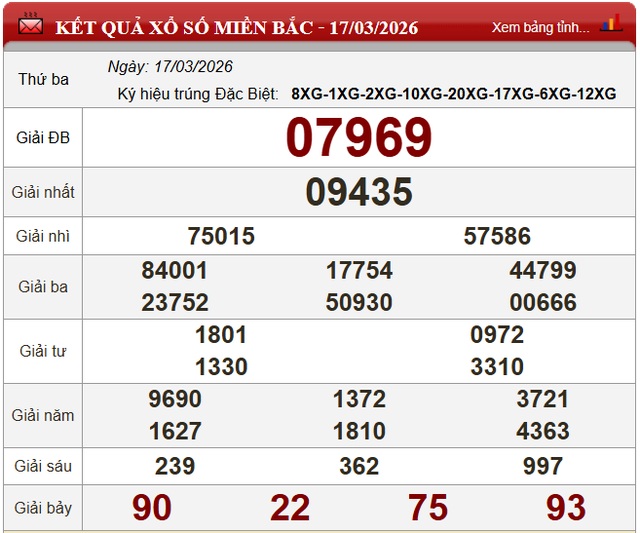 Kết quả Xổ số miền Bắc ngày 17/3/2026