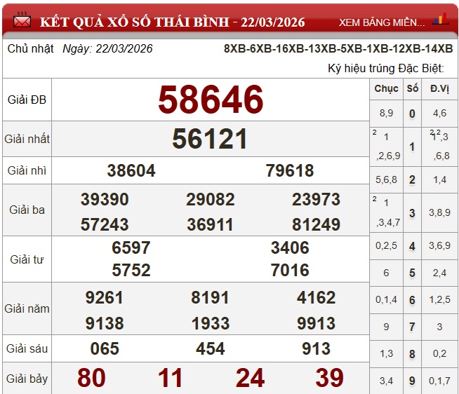 Kết quả Xổ số miền Bắc ngày 22/3/2026