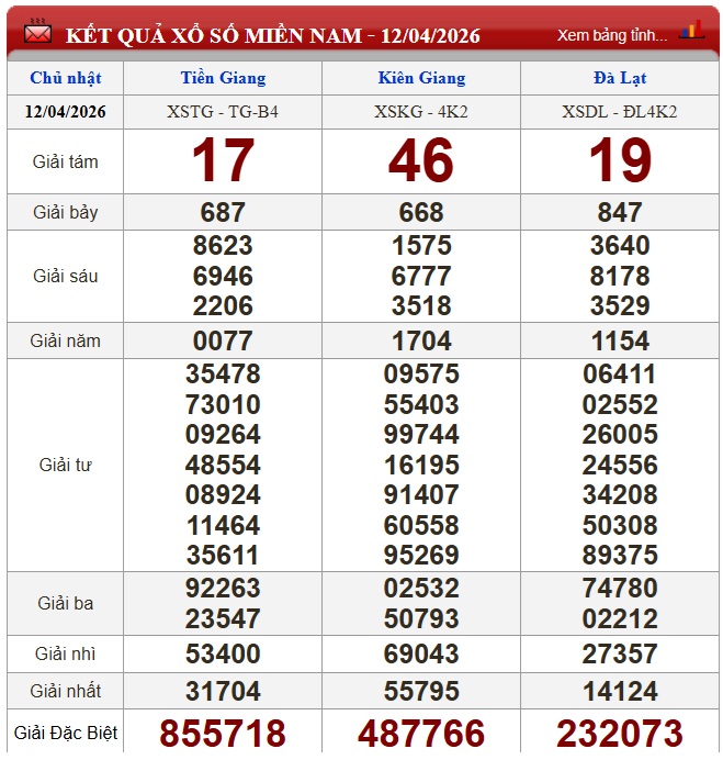 Kết quả xổ số miền Nam ngày 12/4/2026
