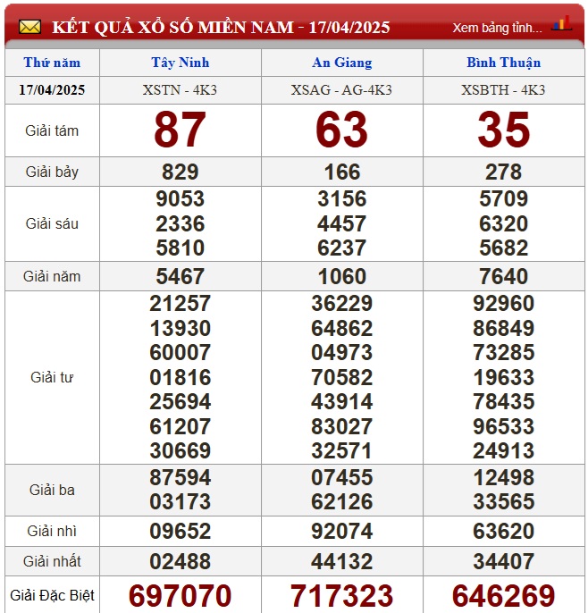Kết quả xổ số miền Nam ngày 17/4/2026