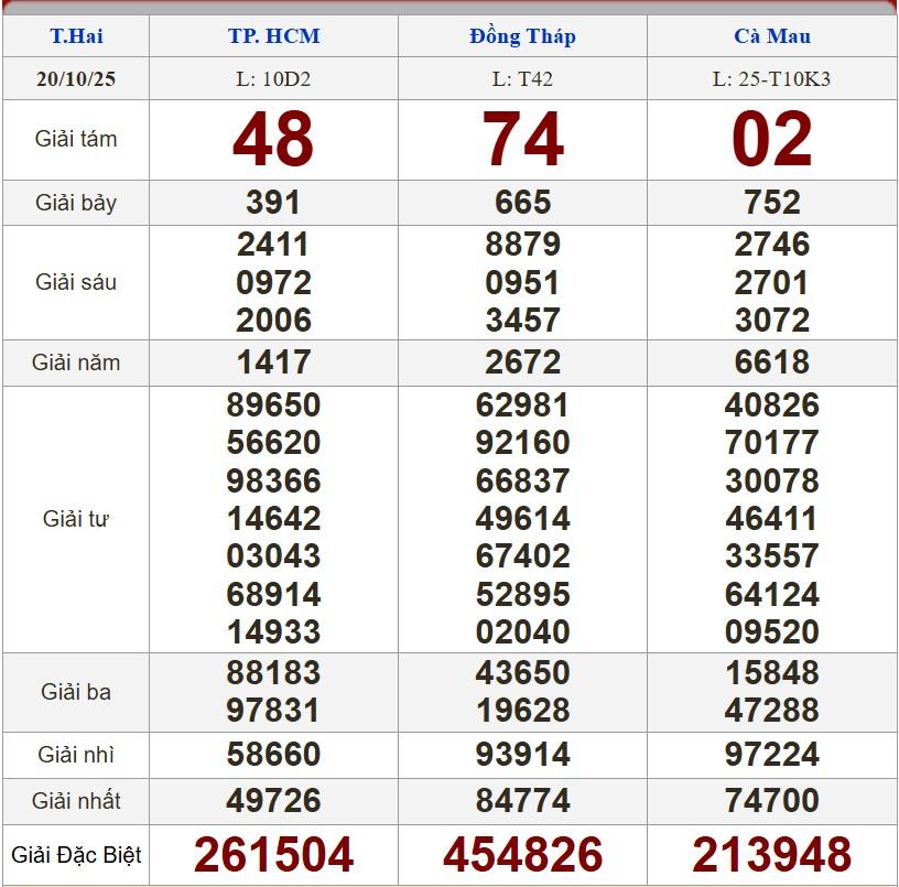 - Kết quả xổ số miền Nam ngày 20/10. KQXSMN 20/10/2025. XSMN 20/10