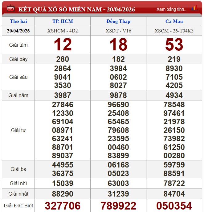 Kết quả xổ số miền Nam ngày 20/4/2026