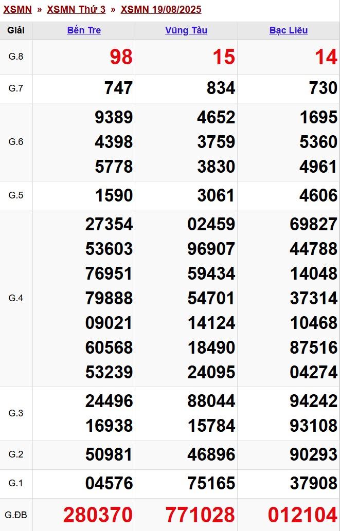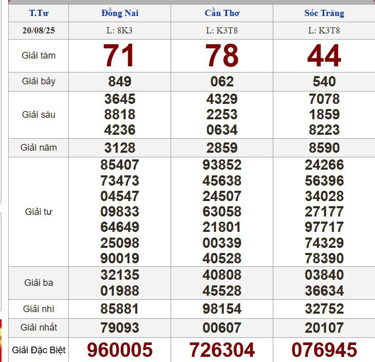 - XSMN 20/8/2025. Xem lại KQXSMN ngày 20/8/2025