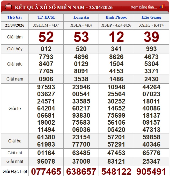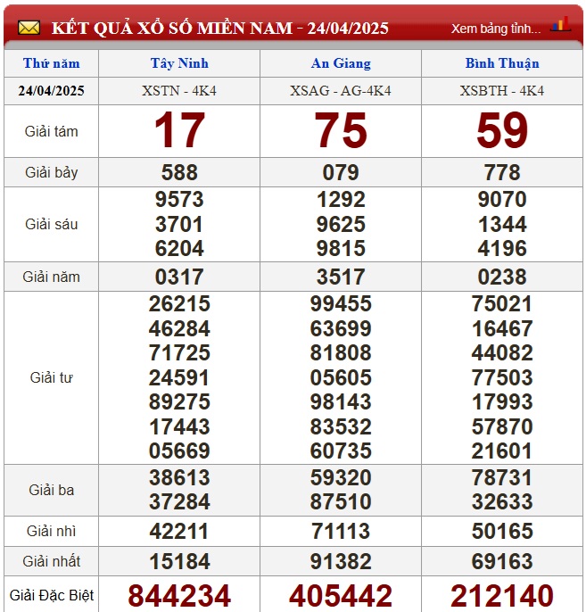 Kết quả xổ số miền Nam ngày 24/4/2026