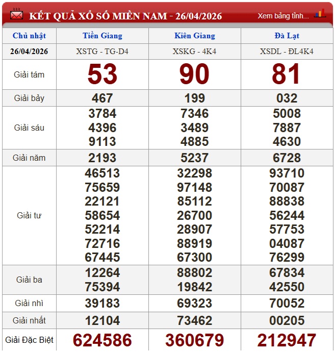 Trực tiếp kết quả XSMN hôm nay - XSMN 26/4 - KQSXMN 26/4/2026 - Xổ số miền Nam ngày chủ nhật