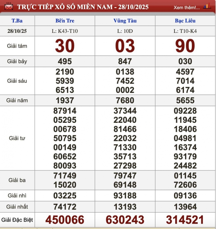 Kết quả xổ số miền Nam ngày 28/10/2025