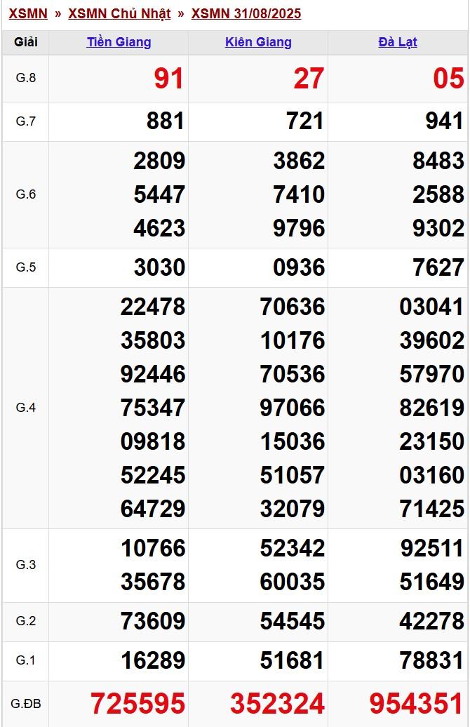 - XSMN 31/8/2025. Xem lại KQXSMN ngày 31/8/2025