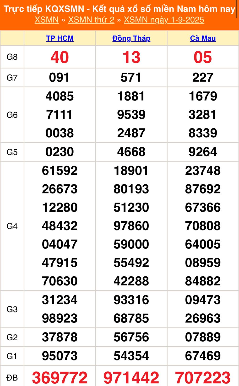 - XSMN 1/9/2025. Xem lại KQXSMN ngày 1/9/2025
