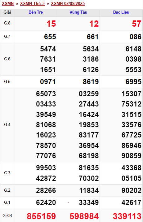 - Thứ Ba: XSMN tiếp nối cùng các đài Bạc Liêu, Vũng Tàu và Bến Tre.