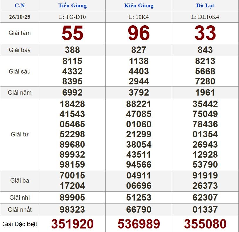 Kết quả xổ số miền Nam ngày 26/10/2025