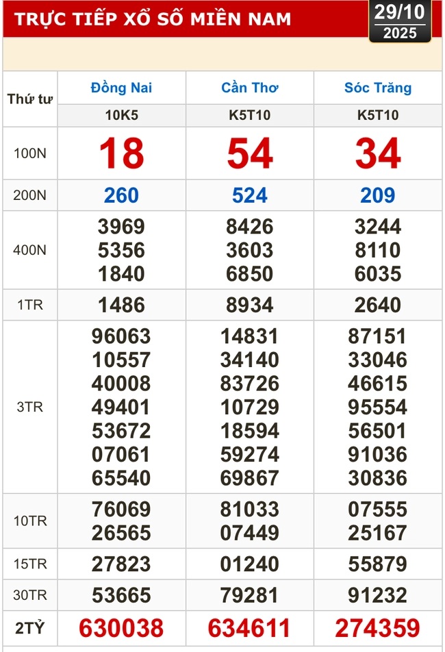 Kết quả xổ số miền Nam ngày 30/10/2025. KQXSMN 30/10