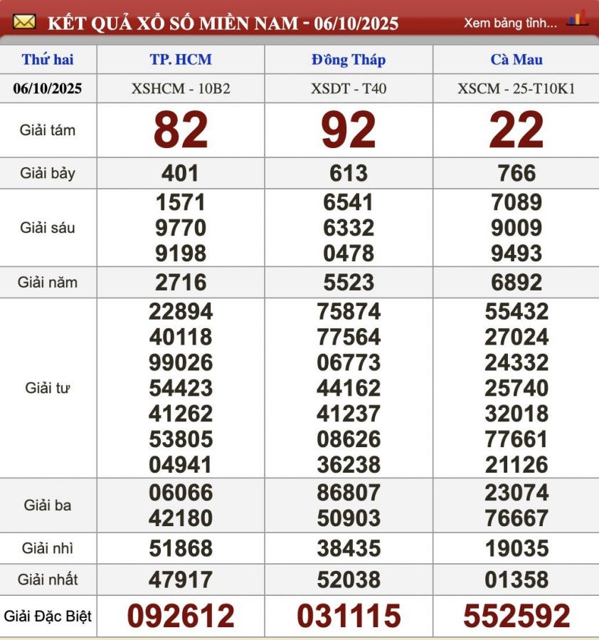 - Kết quả xổ số miền Nam ngày 6/10. KQXSMN 6/10/2025. XSMN 6/10