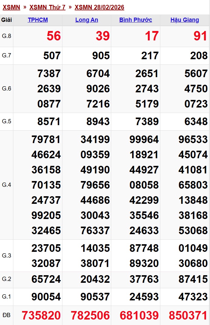 Kết quả xổ số miền Nam ngày 28/2/2026
