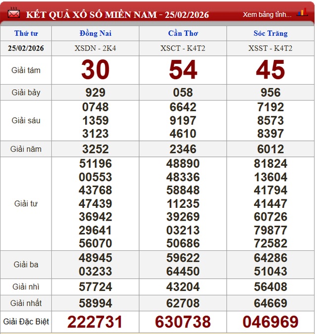 Kết quả xổ số miền Nam ngày 25/2/2026