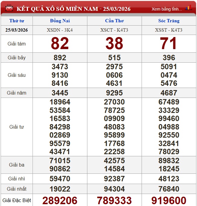 Kết quả xổ số miền Nam ngày 25/3/2026