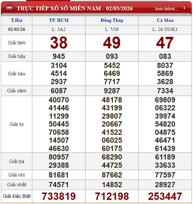 Kết quả xổ số miền Nam ngày 3/3/2026. KQXSMN 3/3