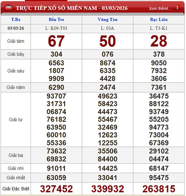 Kết quả xổ số miền Nam ngày 3/3/2026
