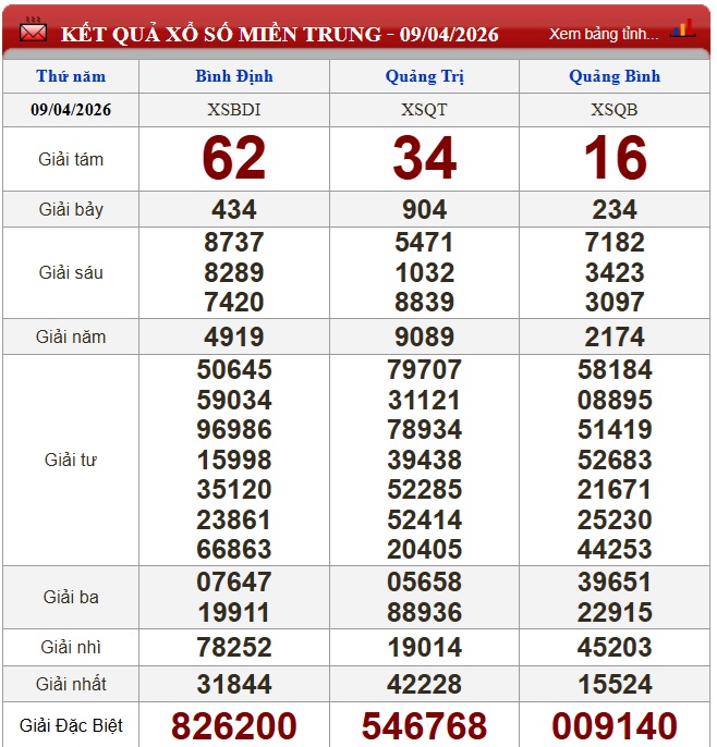 Kết quả xổ số miền Trung ngày 9/4/2026