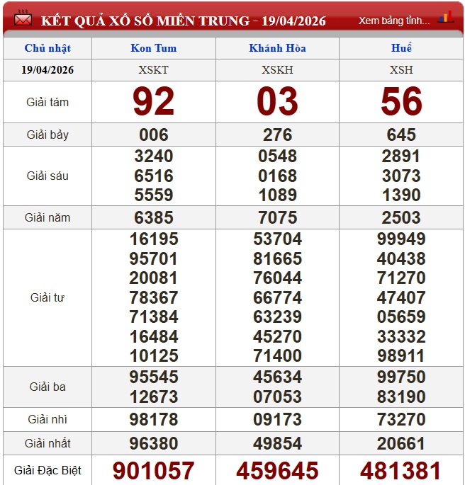 Kết quả xổ số miền Trung ngày 19/4/2026