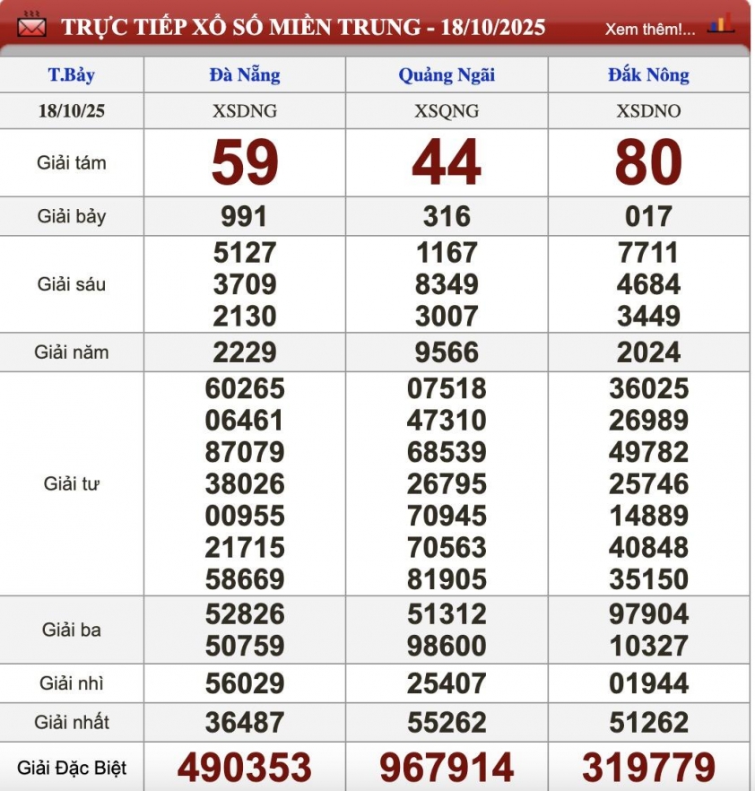 Kết quả xổ số miền Trung ngày 18/0. KQXSMT 18/10/2025. XSMT 18/10
