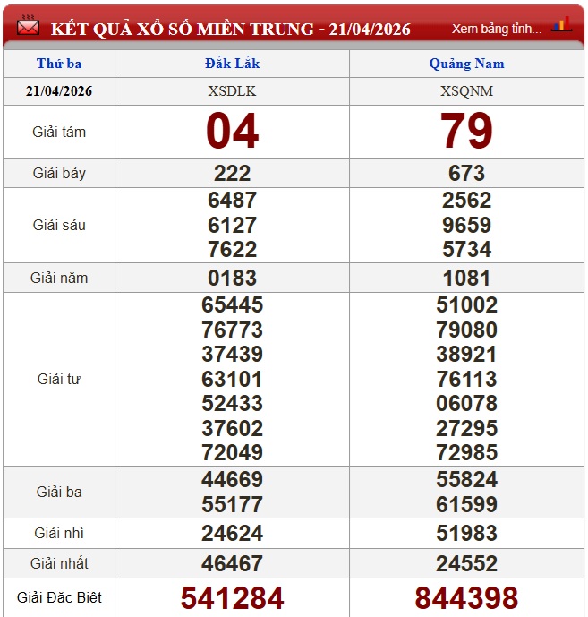 Kết quả xổ số miền Trung ngày 21/4/2026