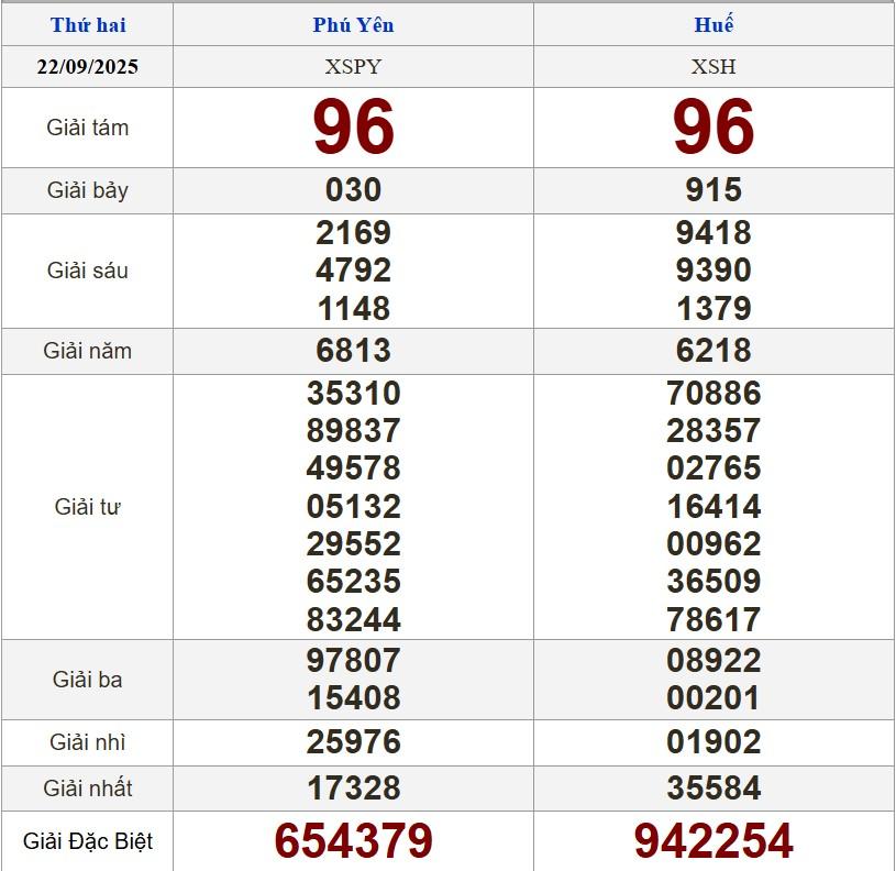 - Thứ Hai: Xổ số miền Trung (XSMT) được quay số tại 2 đài Phú Yên (XSPY) và Thừa Thiên Huế (XSTTH).