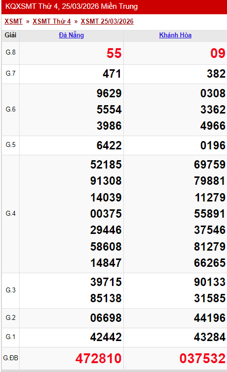 Kết quả xổ số miền Trung (XSMT) hôm nay ngày 25/3