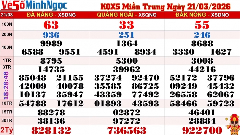 Kết quả xổ số miền Trung (XSMT) hôm nay ngày 27/3 (Cập nhật)