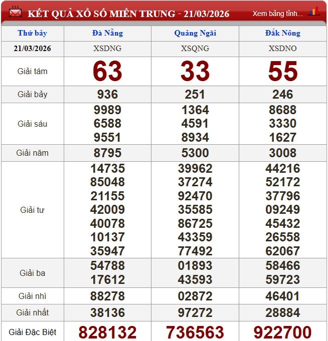 Kết quả xổ số miền Trung ngày 21/3/2026