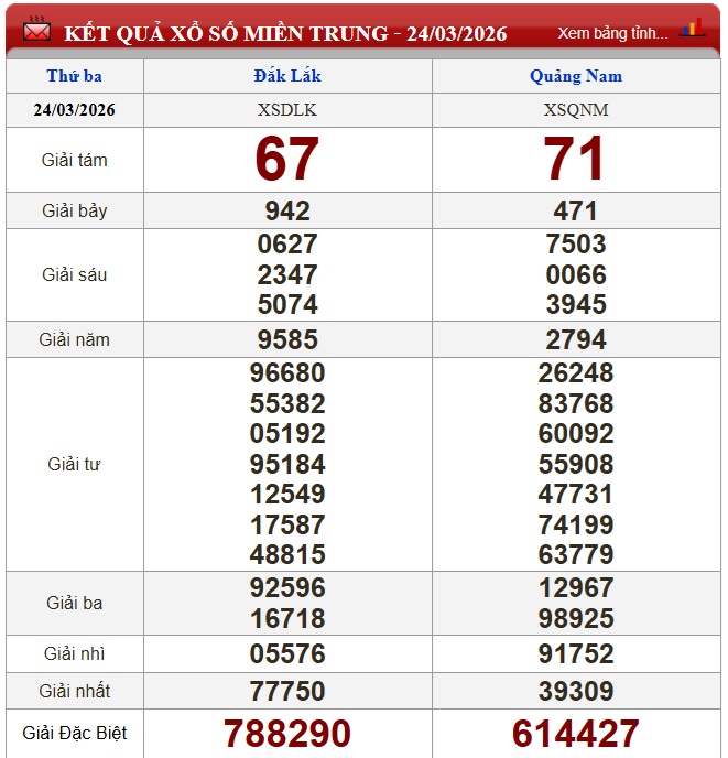 Kết quả xổ số miền Trung ngày 24/3/2026