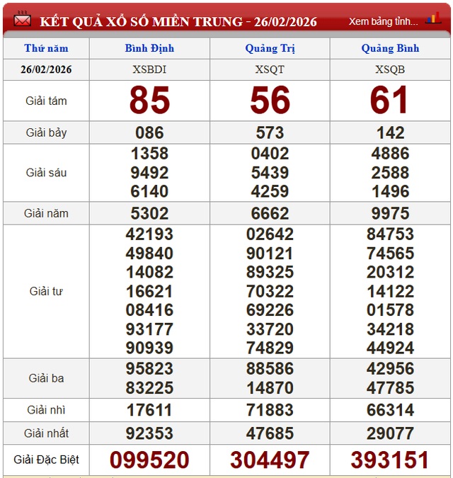 Kết quả xổ số miền Trung ngày 26/2/2026