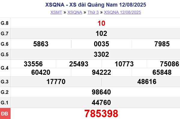 XSQNA 26/8. Kết quả xổ số hôm nay ngày 26/8. XSQNA Thứ Ba. Trực tiếp KQXSQNA ngày 26/8. Kết quả xổ số Quảng Nam hôm nay ngày 26/8/2025. Kết quả xổ số Quảng Nam Thứ Ba ngày 26/8/2025.